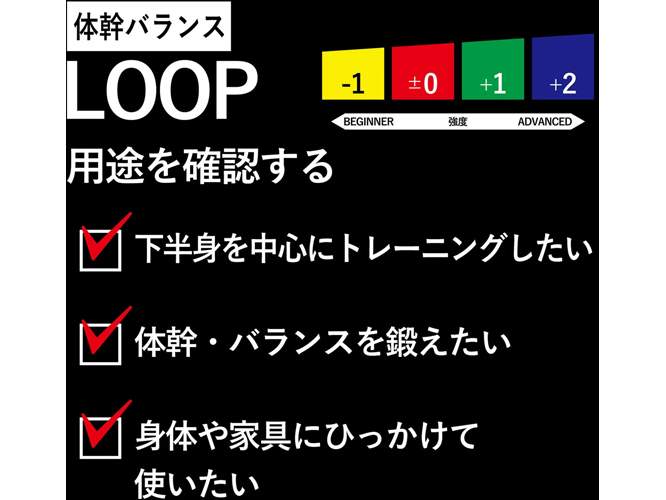 体幹トレーニング・バランストレーニングに適したループタイプ。握らなくても簡単にエクササイズ。【マニュアル付】
