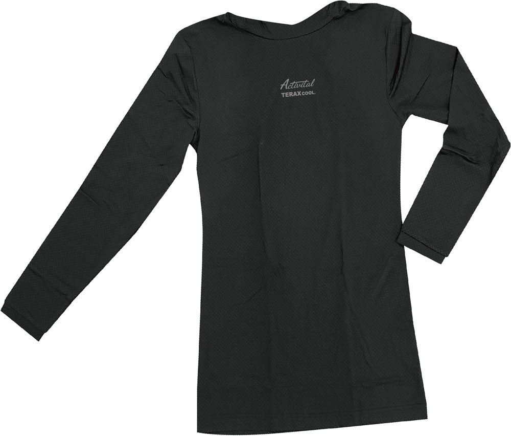 UVカット・吸水速乾・放熱効果・遮熱効果、テラ鉱石等の力で体熱を大気中へ放出、体熱を吸収して遠赤外線に転換して熱放射するハイテクインナー。放熱・遮熱・接触冷感により冷感が持続。放熱遮熱効果と紫外線カットで着用者のコンディションを守ってくれる真夏のロングスリーブインナー。