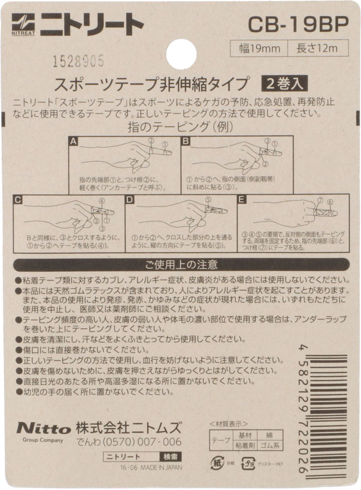 関節の固定と制限を目的としたスポーツテープの主たるテープ。安心のMade in JAPAN、医療系粘着テープを製造している東北事業所にて製造。糊面は、穿孔(穴開き)しており通気性を高めています。