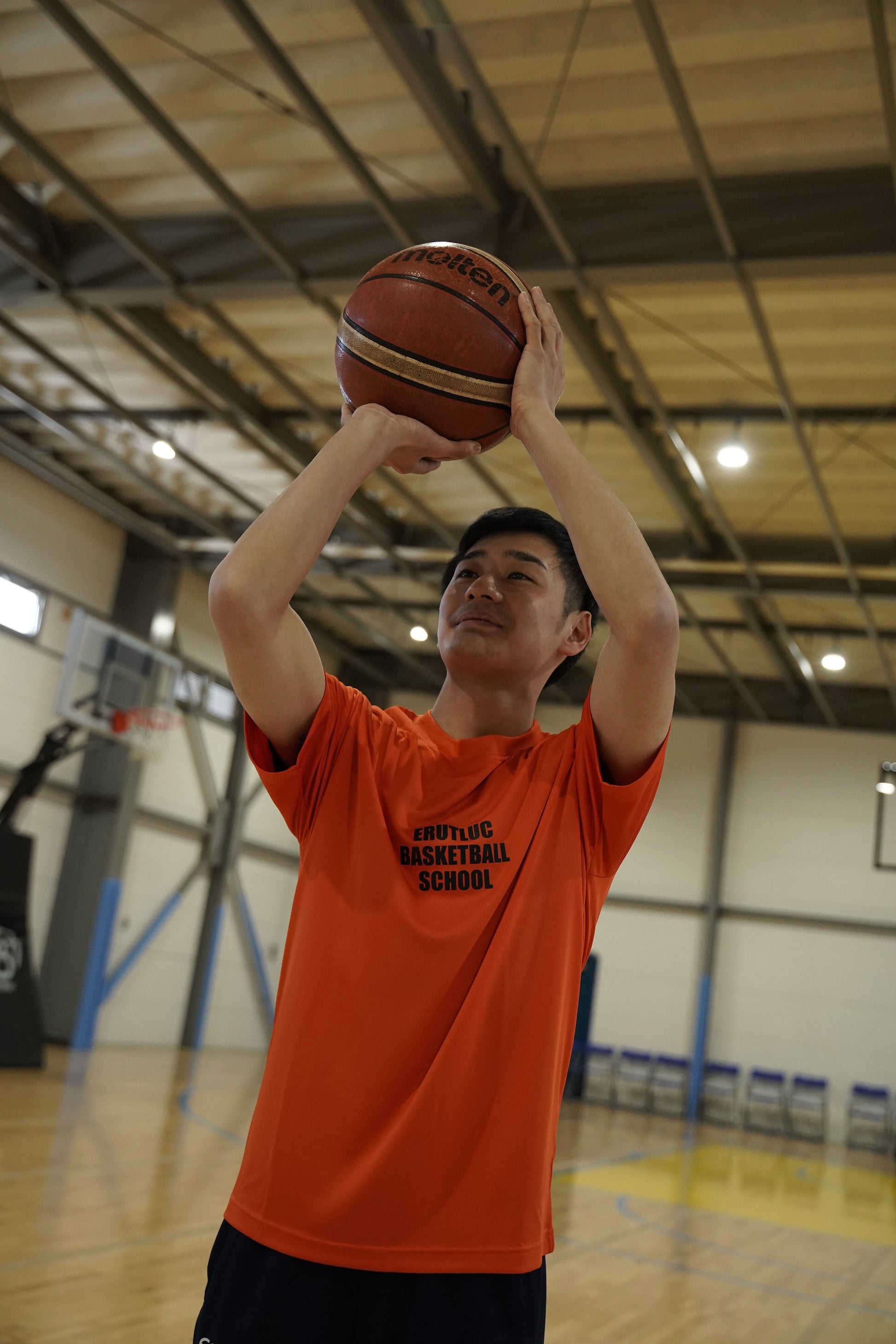 「ERUTLUC BASKETBALL SCHOOL」をプリントしたオリジナルTシャツ。