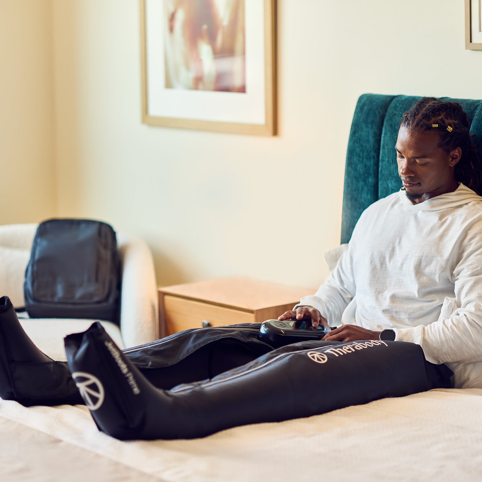 完全ワイヤレスのエアーコンプレッションブーツ。 加圧モーターを上部に移動させることで持ち運びがさらにしやすくなったほか、足部までの加圧が可能に。
