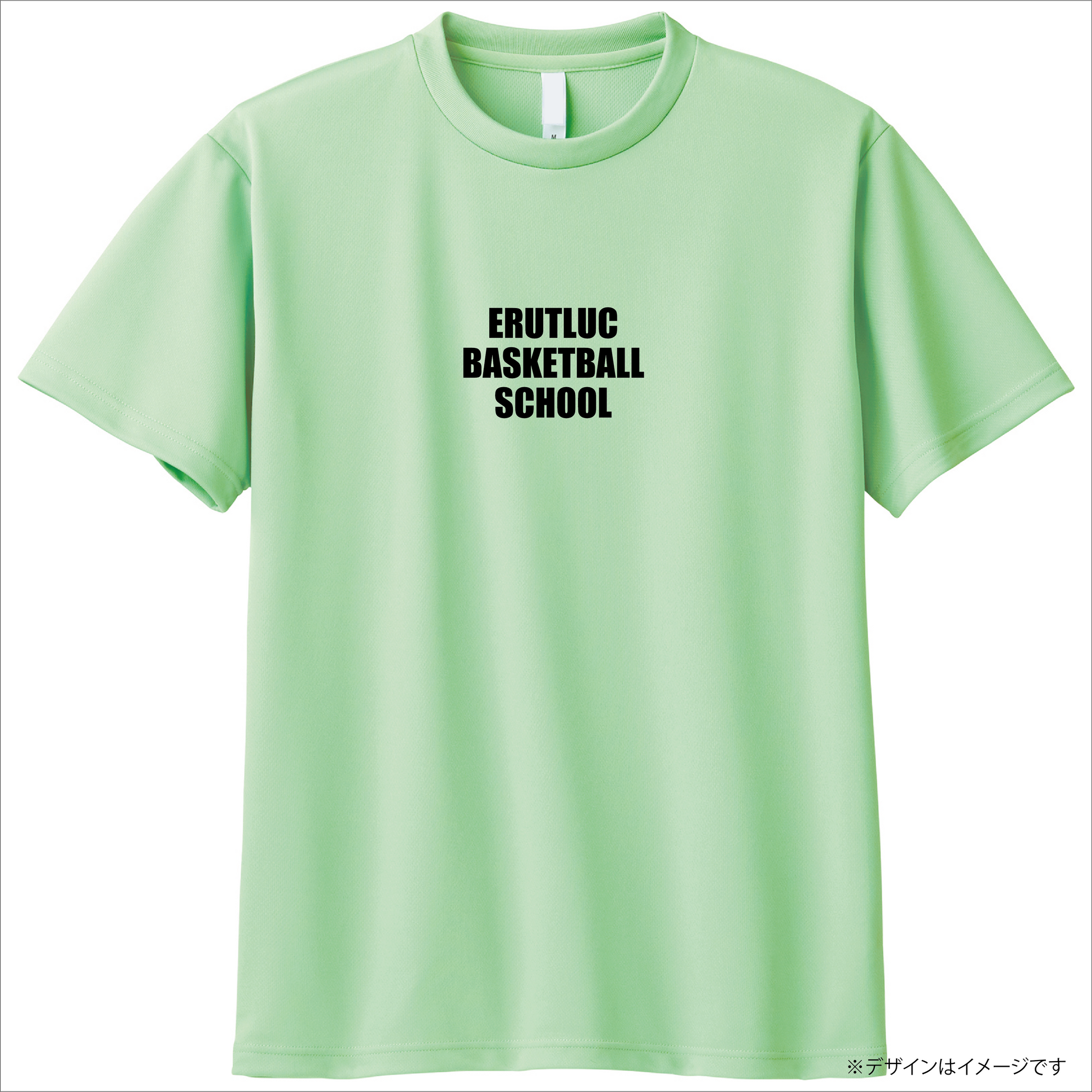 「ERUTLUC BASKETBALL SCHOOL」をプリントしたオリジナルTシャツ。